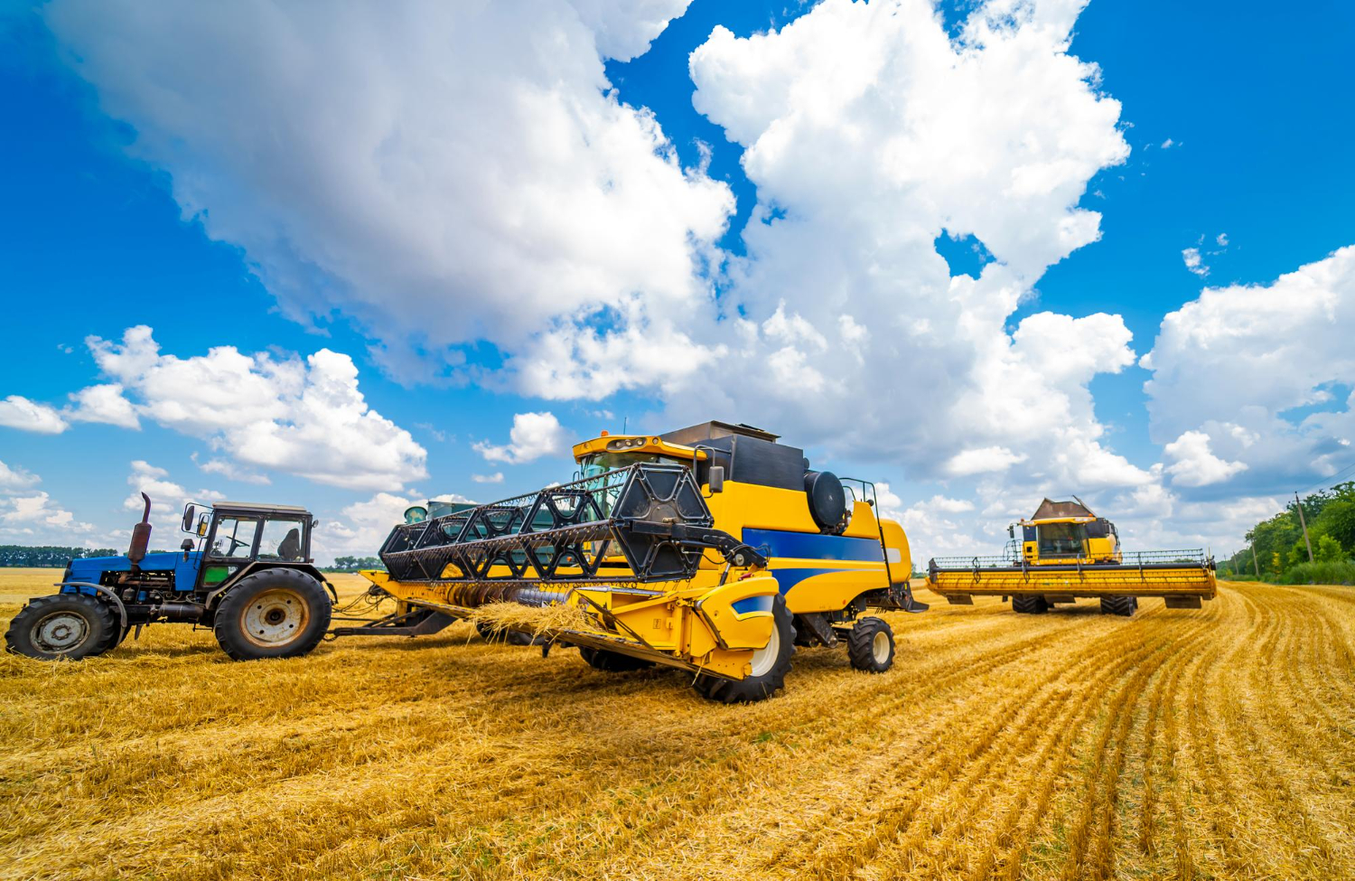 Tracteurs, moissonneuses et outils de préparation du sol durables, conçus pour résister aux terrains accidentés et aux saisons agricoles intensives.